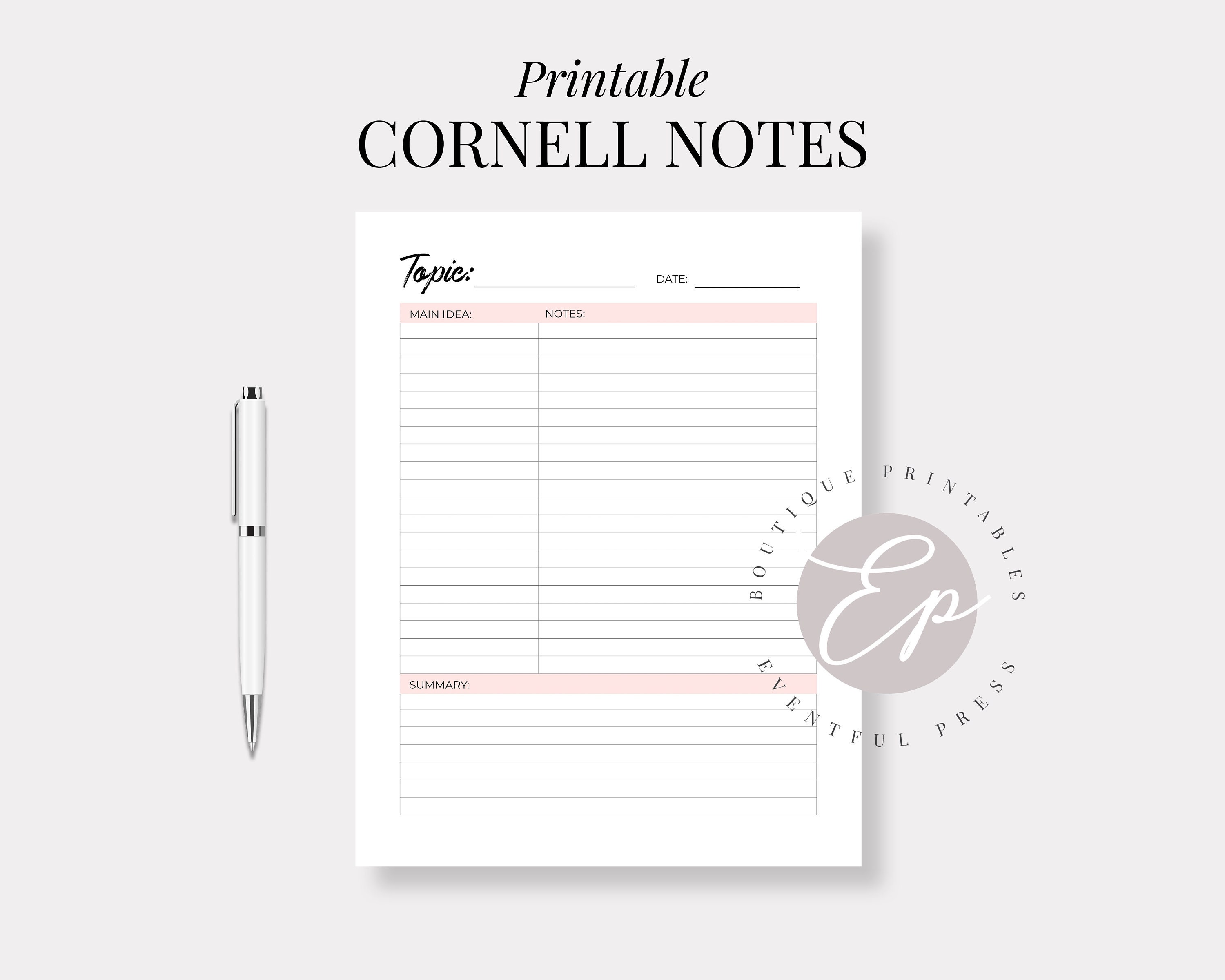 Printable Cornell Notes For Student Note Taking A5 Note Etsy